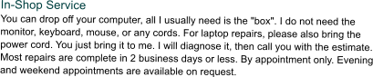 hours charged at In-Shop rates. Requires someone 18 years or older to be present.